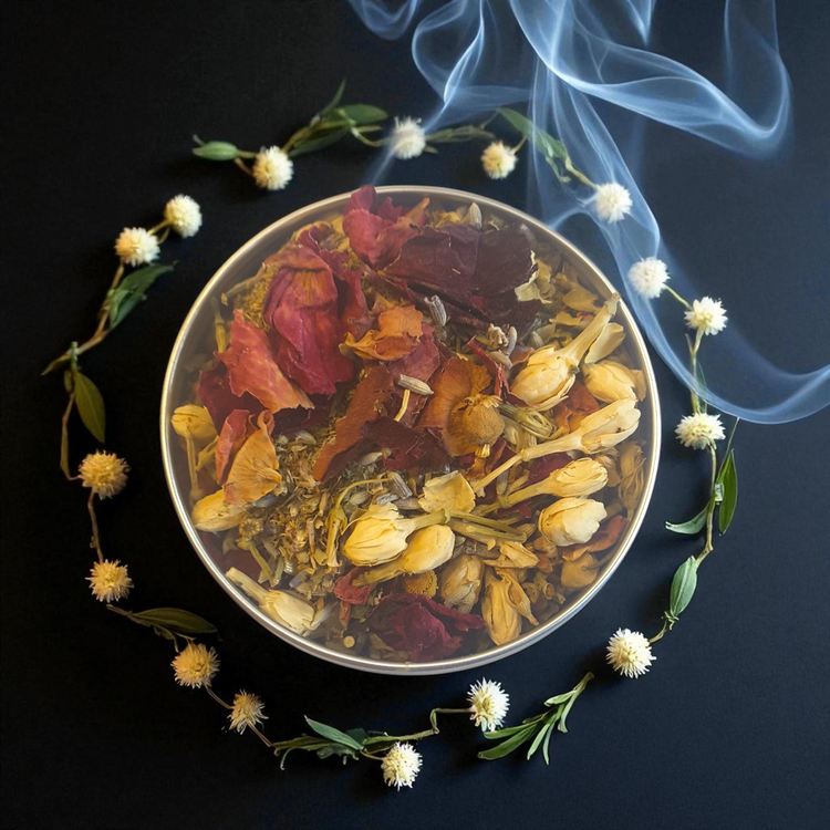 Each tin invites you to connect with ancient wisdom and harness the natural power of the earth, fire and spirit. Burn on charcoal discs to fill your sacred space with enchanting aromas that inspire transformation and balance.